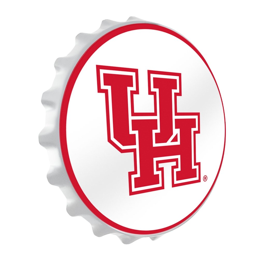 This University of Houston large-scale replica bottle cap wall sign is sure to attract some attention. It is injection molded and features a high resolution digitally printed face with a high gloss finish. Its large size will show your pride for the Cougars and add immediate color and appeal to any room of the home or office. This is an officially licensed product of Houston and made in the USA.