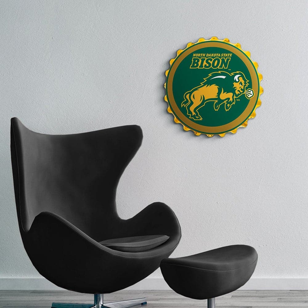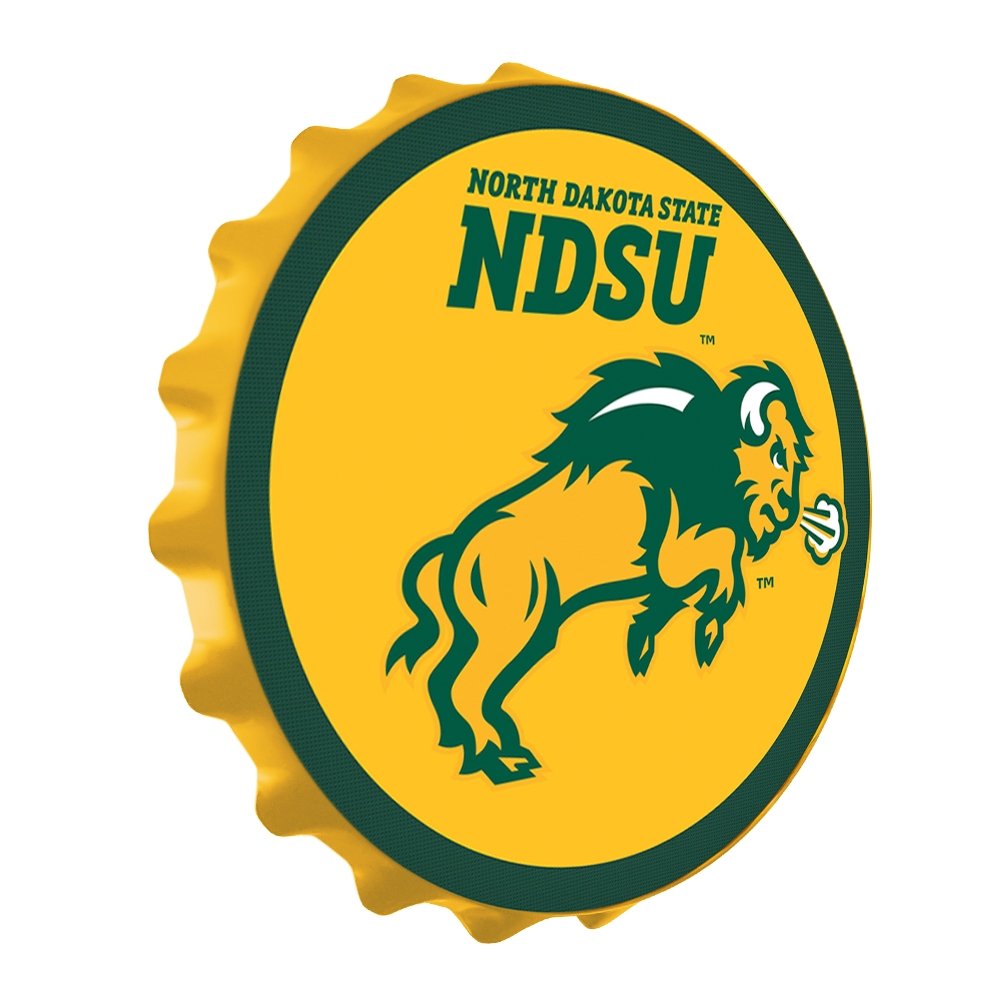This North Dakota State University large-scale replica bottle cap wall sign is sure to attract some attention. It is injection molded and features a high-resolution digitally printed face with a high gloss finish. Its large size will show your pride for the Bison and add immediate color and appeal to any room of the home or office. This is an officially licensed product of North Dakota State and made in the USA.