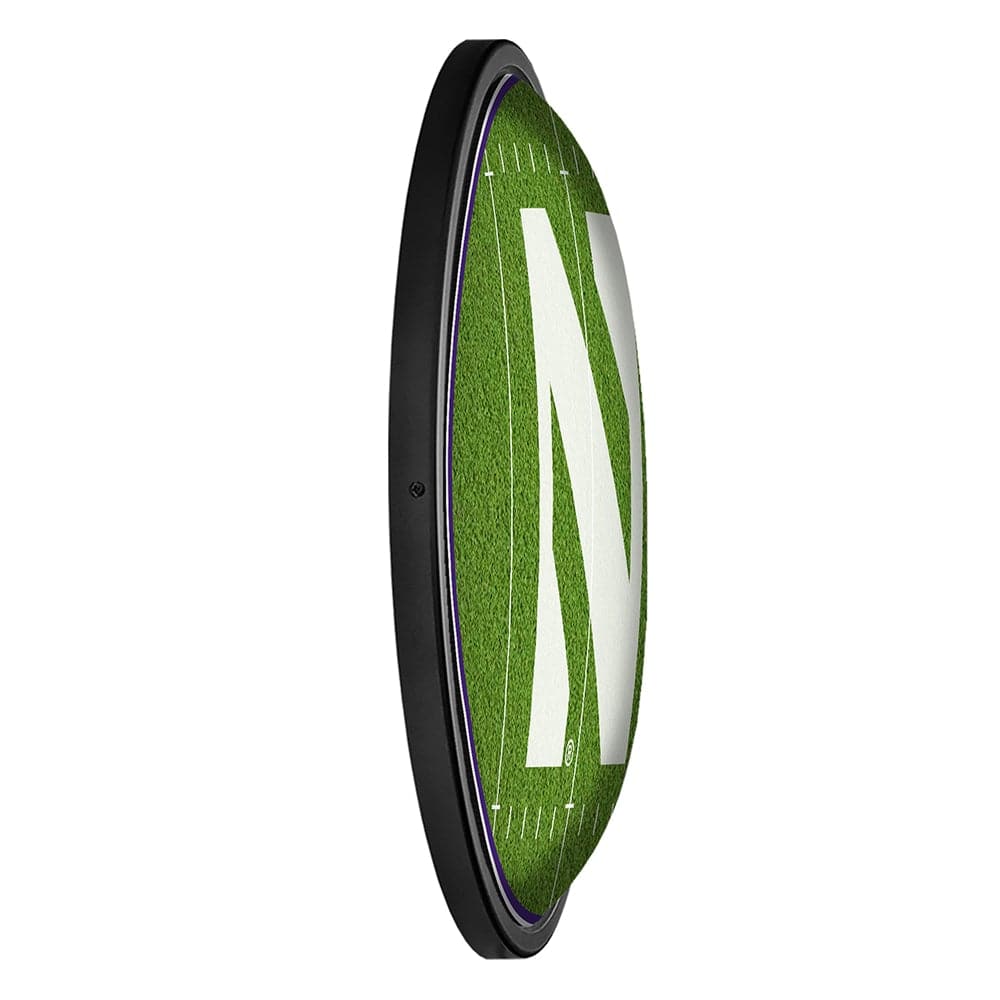 Our Northwestern Wildcats "On the 50" Slimline Lighted Wall Sign is the perfect modern styled sign for any wall. Whether it's your fan cave, office, game room, garage, or dorm, this decorative light with it's football field design is the perfect way to show your love for the Wildcats. Its high resolution digitally printed face provides a photographic quality image with a high gloss finish. It is illuminated with the latest in LED technology and only uses 12 volts, making it perfect to bring with you to tailgate or in your homegating headquarters. It comes with a 6 foot power cord and an in-line switch. Mounting hardware included. This is an officially licensed product of Northwestern University and is made in the USA.