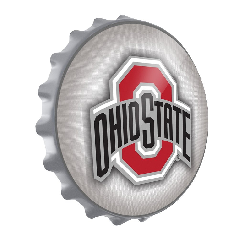 This Ohio State University large-scale replica bottle cap wall sign is sure to attract some attention. It is injection molded and features a high resolution digitally printed face with a high gloss finish. Its large size will show your pride for the Buckeyes and add immediate color and appeal to any room of the home or office. This is an officially licensed product of Ohio State and made in the USA.