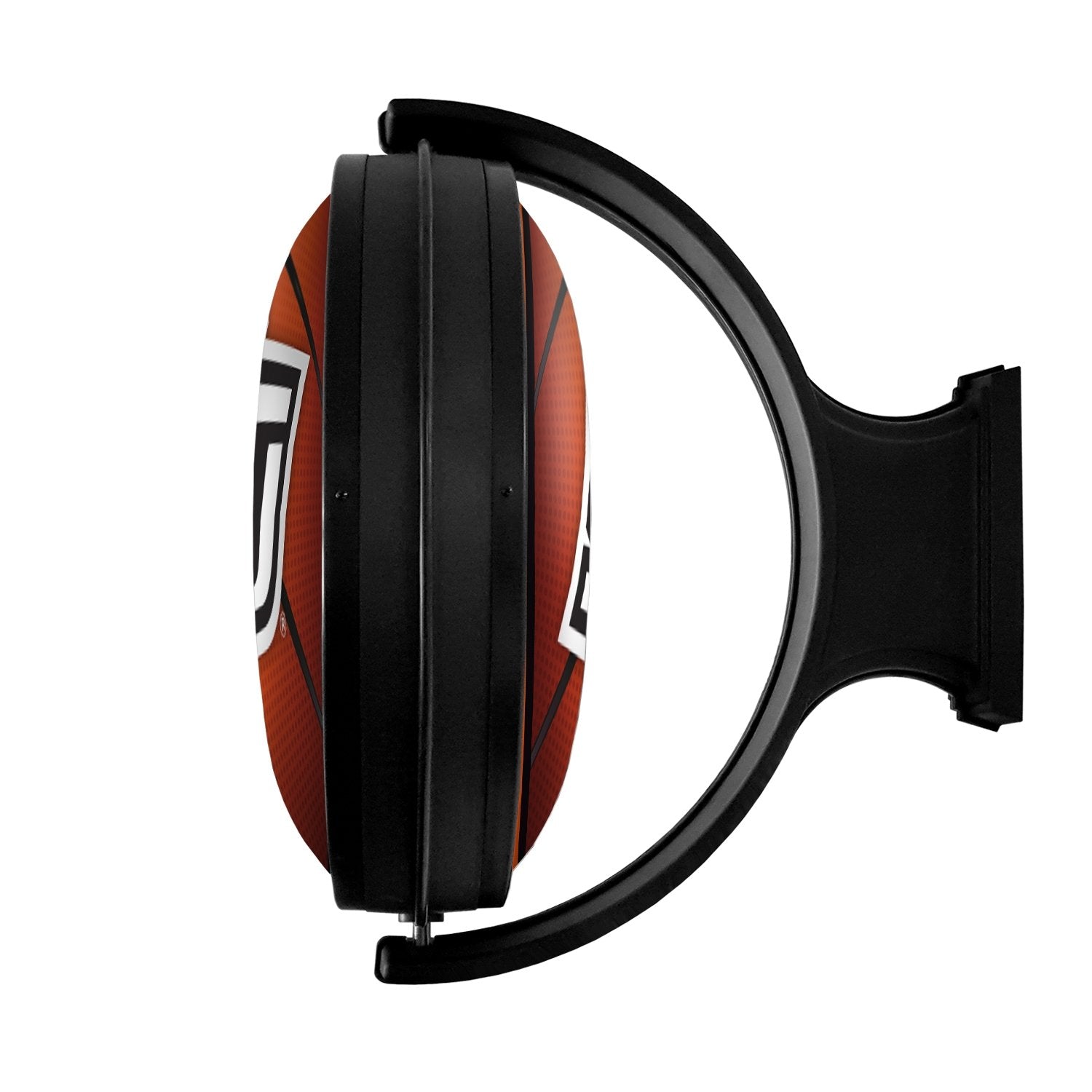 The Original Oklahoma State University Rotating Lighted Wall Sign both lights up and spins while allowing you to displaying your passion for the Cowboys. Whether it's your fan cave, office, game room, or garage, this decorative basketball themed sign is the perfect addition to any wall. It showcases the latest in LED technology and only uses 12 watts of power. Injection molded, it comes with an 8 foot power cord and a metal pull chain. Mounting hardware included and installation takes no more than 10 minutes. This is an officially licensed product of the Cowboys and made in the USA.