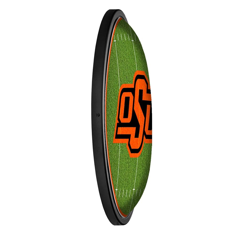 Our Oklahoma State Cowboys "On the 50" Slimline Lighted Wall Sign is the perfect modern styled sign for any wall. Whether it's your fan cave, office, game room, garage, or dorm, this decorative light with it's football field design is the perfect way to show your love for the Cowboys. Its high resolution digitally printed face provides a photographic quality image with a high gloss finish. It is illuminated with the latest in LED technology and only uses 12 volts, making it perfect to bring with you to tailgate or in your homegating headquarters. It comes with a 6 foot power cord and an in-line switch. Mounting hardware included. This is an officially licensed product of Oklahoma State University and is made in the USA.