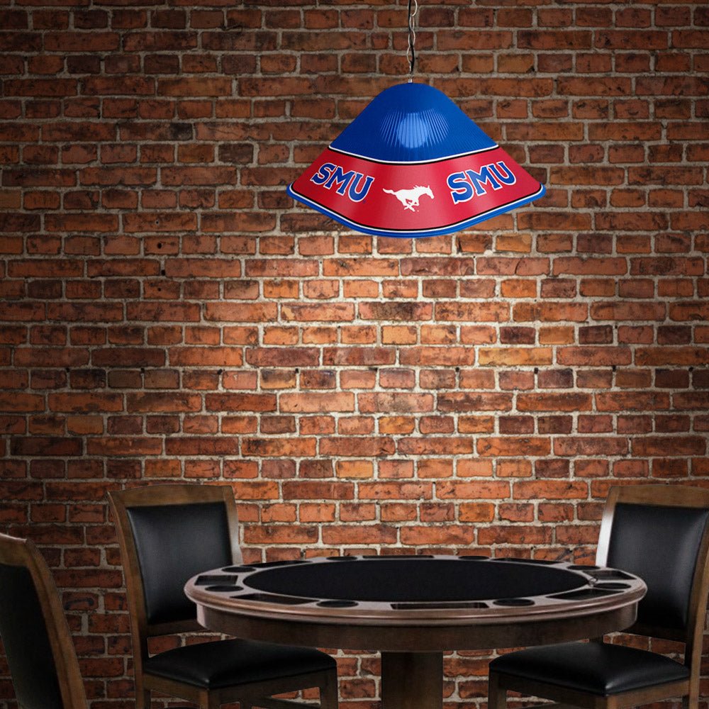 This SMU game table light is the perfect fit to add that finishing touch to any cabin, fan cave, or game room. Injection molded and featuring a high-resolution image with a high gloss finish, it is sure to make a statement while showing off your love for the outdoors. This is an officially licensed product of the Mustangs and made in the USA.