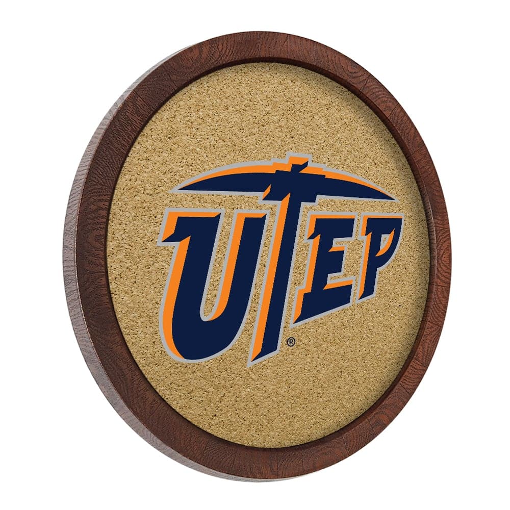 UTEP Miners: "Faux" Barrel Framed Cork Board - The Fan-Brand