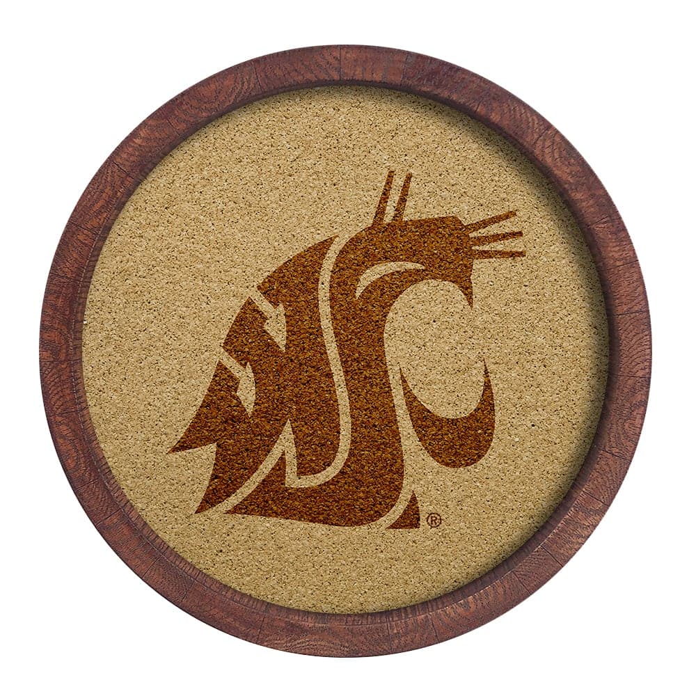 Washington State Cougars: Logo - "Faux" Barrel Framed Cork Board - The Fan-Brand